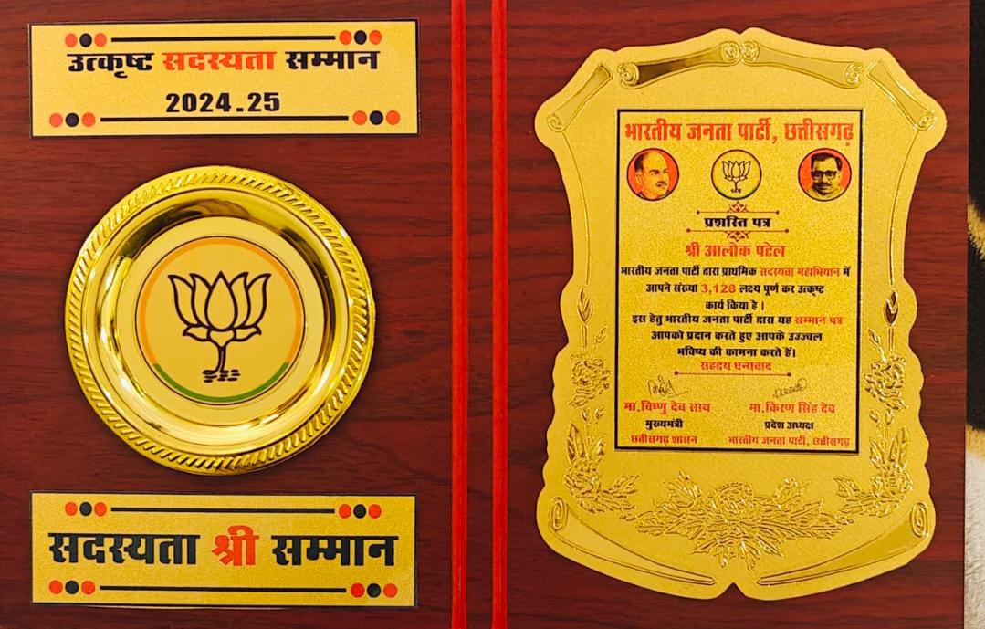 भाजपा सदस्यता अभियान में उत्कृष्ट कार्य के लिए आलोक पटेल हुए सम्मानित, सोशल मीडिया पर मिल रही क्षेत्रीय जनता से बधाइयाँ… August 3, 2025 No Comments